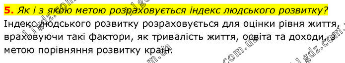 Як і з якою метою розраховується індекс людського розвитку? Індекс людського розвитку розраховується для оцінки рівня життя, враховуючи такі фактори, як тривалість життя, освіта та доходи, з метою порівняння розвитку країн.