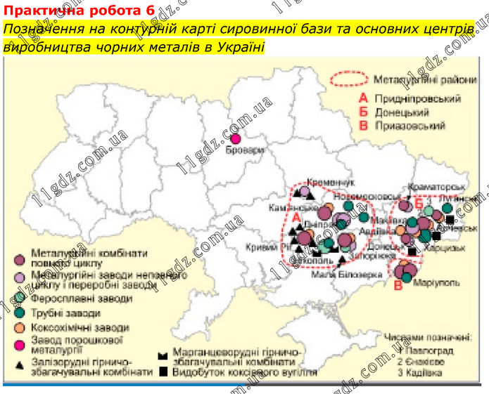 Практична робота 6 Позначення на контурній карті сировинної бази та основних центрів виробництва чорних металів в Україні