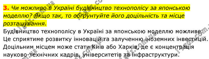 Чи можливо в Україні будівництво технополісу за японською моделлю? Якщо так, то обґрунтуйте його доцільність та місце розташування. Будівництво технополісу в Україні за японською моделлю можливе. Це сприятиме розвитку інновацій та залученню іноземних інвестицій. Доцільним місцем може стати Київ або Харків, де є концентрація науково-технічних кадрів, університетів та інфраструктури.
