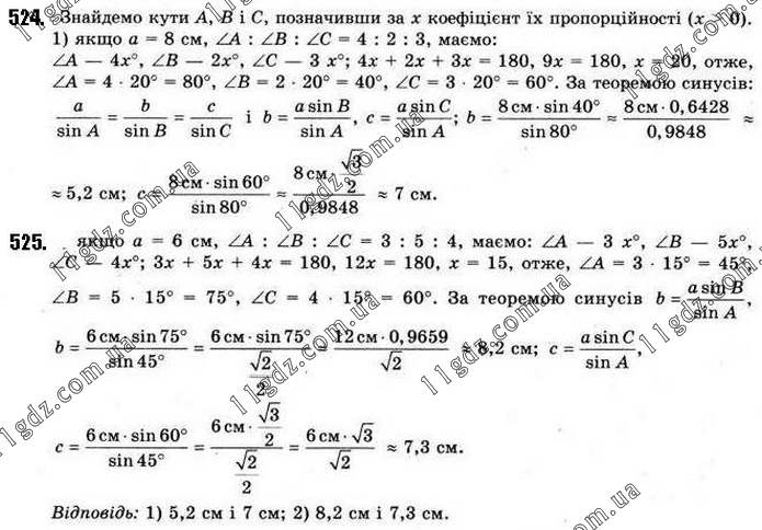 Розділ 3. РОЗВ’ЯЗУВАННЯ ТРИКУТНИКІВ » 524-525