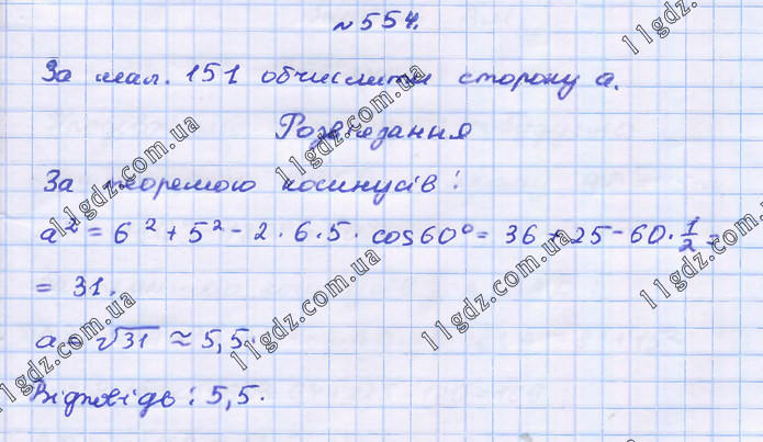 Розділ 3. РОЗВ’ЯЗУВАННЯ ТРИКУТНИКІВ » 554