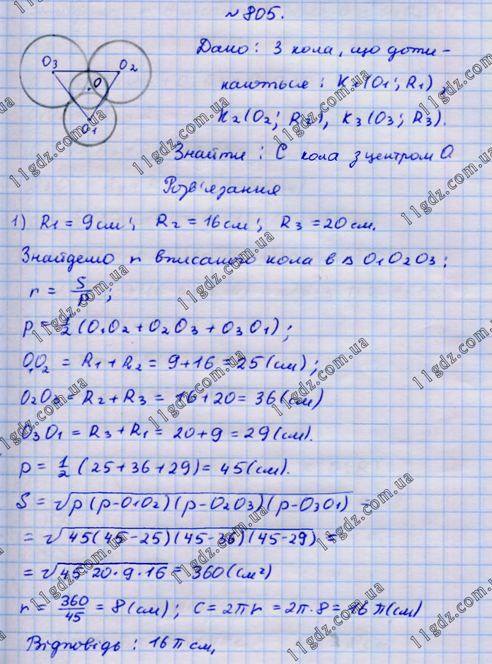Розділ 4. ПРАВИЛЬНІ МНОГОКУТНИКИ. ДОВЖИНА КОЛА » 805 (1)