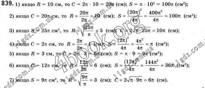 Розділ 4. ПРАВИЛЬНІ МНОГОКУТНИКИ. ДОВЖИНА КОЛА » 839