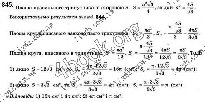 Розділ 4. ПРАВИЛЬНІ МНОГОКУТНИКИ. ДОВЖИНА КОЛА » 845