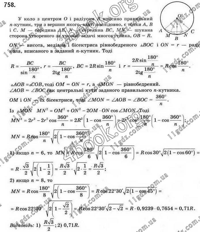 Розділ 4. ПРАВИЛЬНІ МНОГОКУТНИКИ. ДОВЖИНА КОЛА » 758
