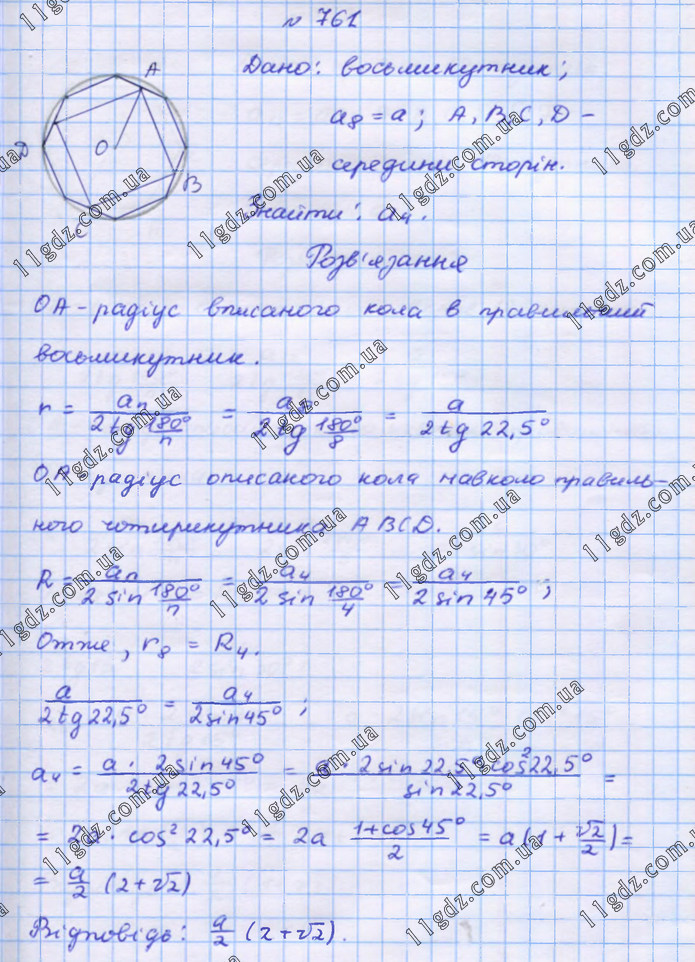 Розділ 4. ПРАВИЛЬНІ МНОГОКУТНИКИ. ДОВЖИНА КОЛА » 761