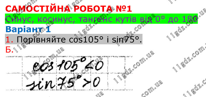 Порівняйте cos105° і sin75°.