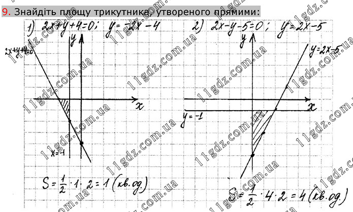 Знайдіть площу трикутника, утвореного прямими: