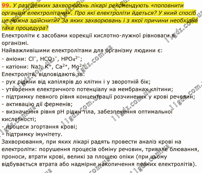 У разі деяких захворювань лікарі рекомендують «поповнити організм електролітами». Про які електроліти йдеться? У який спосіб це можна здійснити? За яких захворювань і з якої причини необхідна така процедура? Електроліти є засобами корекції кислотно-лужної рівноваги в організмі. Найважливішими електролітами для організму людини є: - аніони: Сl–, НСО3–, НРО42–; - катіони: Nа+, К+, Са2+, Мg2+. Електроліти, відповідають за: - рух рідини від капілярів до клітин і у зворотній бік; - утворення електричного потенціалу на мембранах клітини; - підтримку певного рівня концентрації розчинених у крові речовин; - активацію дії ферменів; - визначення рівня рН рідин тіла, забезпечення оптимальної кислотності; - процеси згортання крові; - підтримку імунітету. Захворювання, при яких лікарі радять провести аналіз крові на електроліти: порушення процесів обміну речовин, тривале блювання, проноси, втрати крові, великі за площею опіки (при цьому відбувається втрата або надмірне накопичення певних електролітів).