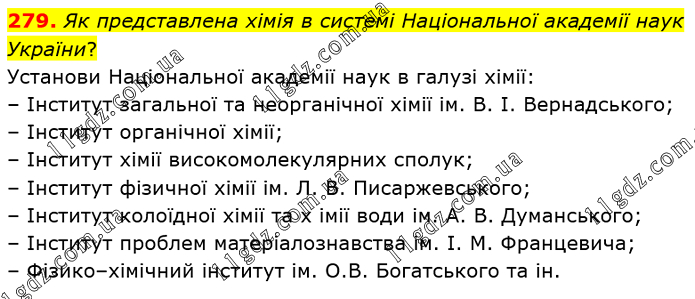 Як представлена хімія в системі Національної академії наук України? Установи Національної академії наук в галузі хімії: – Інститут загальної та неорганічної хімії ім. В. І. Вернадського; – Інститут органічної хімії; – Інститут хімії високомолекулярних сполук; – Інститут фізичної хімії ім. Л. В. Писаржевського; – Інститут колоїдної хімії та х імії води ім. А. В. Думанського; – Інститут проблем матеріалознавства ім. І. М. Францевича; – Фізико–хімічний інститут ім. О.В. Богатського та ін.