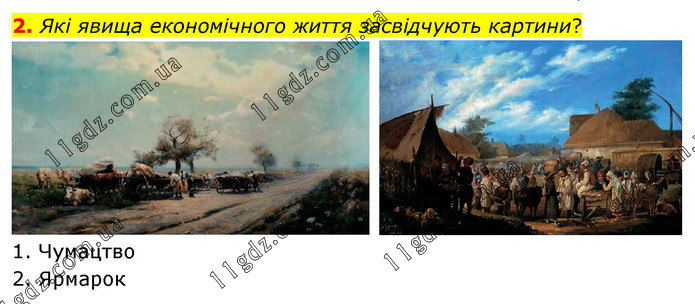 Які явища економічного життя засвідчують картини? 1. Чумацтво 2. Ярмарок