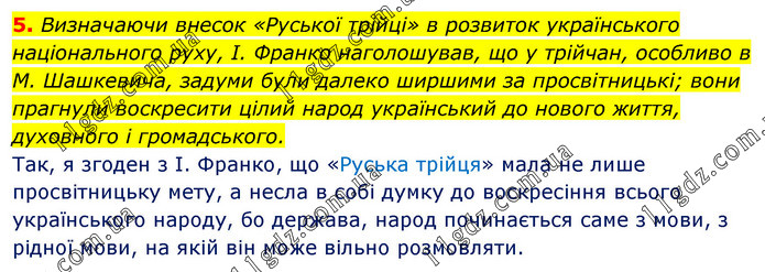 Визначаючи внесок «Руської трійці» в розвиток українського національного руху, І. Франко наголошував, що у трійчан, особливо в М. Шашкевича, задуми були далеко ширшими за просвітницькі; вони прагнули воскресити цілий народ український до нового життя, духовного і громадського. Так, я згоден з І. Франко, що «Руська трійця» мала не лише просвітницьку мету, а несла в собі думку до воскресіння всього українського народу, бо держава, народ починається саме з мови, з рідної мови, на якій він може вільно розмовляти.