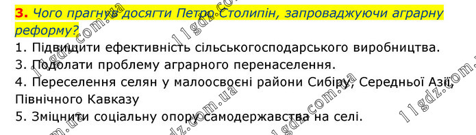 Чого прагнув досягти Петро Столипін, запроваджуючи аграрну реформу? 1. Підвищити ефективність сільськогосподарського виробництва. 3. Подолати проблему аграрного перенаселення. 4. Переселення селян у малоосвоєні райони Сибіру, Середньої Азії, Північного Кавказу 5. Зміцнити соціальну опору самодержавства на селі.