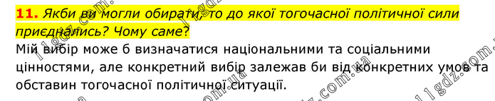 Якби ви могли обирати, то до якої тогочасної політичної сили приєднались? Чому саме? Мій вибір може б визначатися національними та соціальними цінностями, але конкретний вибір залежав би від конкретних умов та обставин тогочасної політичної ситуації.