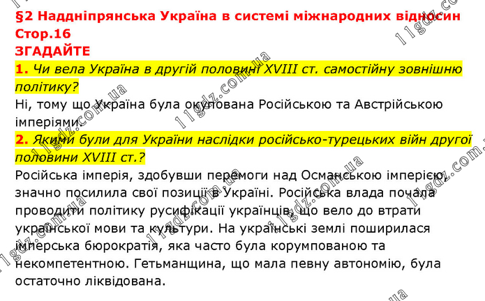 ТЕМА 1. УКРАЇНСЬКІ ЗЕМЛІ У СКЛАДІ РОСІЙСЬКОЇ ІМПЕР » Стр.16 (1-2)