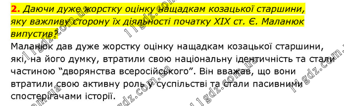 2. Даючи дуже жорстку оцінку нащадкам козацької старшини, яку важливу сторону їх діяльності початку ХІХ ст. Є. Маланюк випустив? Маланюк дав дуже жорстку оцінку нащадкам козацької старшини, які, на його думку, втратили свою національну ідентичність та стали частиною “дворянства всеросійського”. Він вважав, що вони втратили свою активну роль у суспільстві та стали пасивними спостерігачами історії.