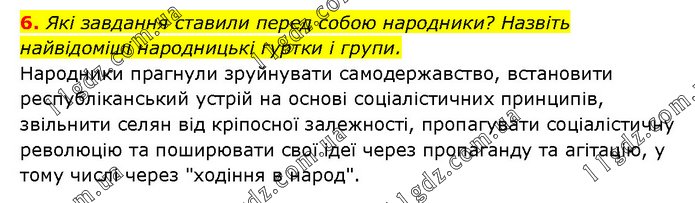 Які завдання ставили перед собою народники? Назвіть найвідоміші народницькі гуртки і групи. Народники прагнули зруйнувати самодержавство, встановити республіканський устрій на основі соціалістичних принципів, звільнити селян від кріпосної залежності, пропагувати соціалістичну революцію та поширювати свої ідеї через пропаганду та агітацію, у тому числі через "ходіння в народ".