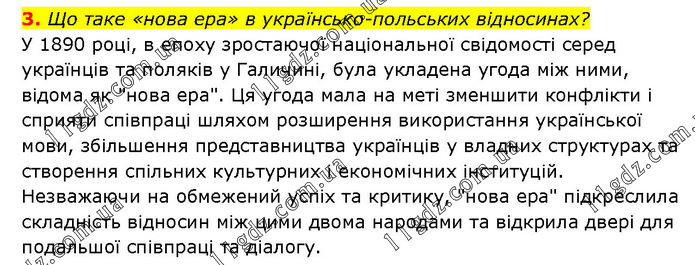 Що таке «нова ера» в українсько-польських відносинах? У 1890 році, в епоху зростаючої національної свідомості серед українців та поляків у Галичині, була укладена угода між ними, відома як "нова ера". Ця угода мала на меті зменшити конфлікти і сприяти співпраці шляхом розширення використання української мови, збільшення представництва українців у владних структурах та створення спільних культурних і економічних інституцій. Незважаючи на обмежений успіх та критику, "нова ера" підкреслила складність відносин між цими двома народами та відкрила двері для подальшої співпраці та діалогу.