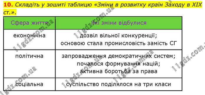 Складіть у зошиті таблицю «Зміни в розвитку країн Заходу в XIX ст.».