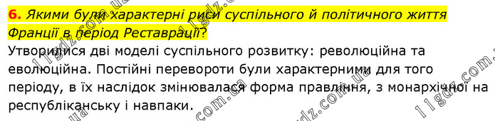 Якими були характерні риси суспільного й політичного життя Франції в період Реставрації? Утворилися дві моделі суспільного розвитку: революційна та еволюційна. Постійні перевороти були характерними для того періоду, в їх наслідок змінювалася форма правління, з монархічної на республіканську і навпаки.