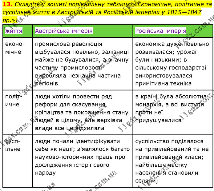 Складіть у зошиті порівняльну таблицю «Економічне, політичне та суспільне життя в Австрійській та Російській імперіях у 1815—1847 рр.».