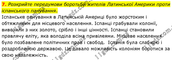Розкрийте передумови боротьби жителів Латинської Америки проти іспанського панування. Іспанське панування в Латинській Америці було жорстоким і обтяжливим для місцевого населення. Іспанці грабували колонії, вивозили з них золото, срібло і інші цінності. Іспанці становили правлячу еліту, яка володіла всіма привілеями. Місцеве населення було позбавлене політичних прав і свобод. Іспанія була слабкою і роздробленою державою. Це давало можливість колоніям боротися за свою незалежність.