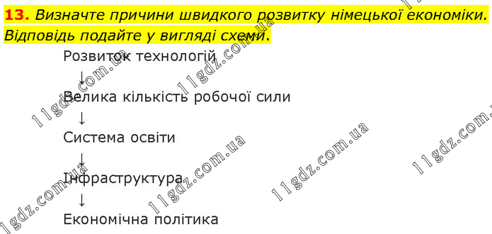 Визначте причини швидкого розвитку німецької економіки. Відповідь подайте у вигляді схеми. Розвиток технологій ↓ Велика кількість робочої сили ↓ Система освіти ↓ Інфраструктура ↓ Економічна політика