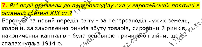 Які події призвели до перерозподілу сил у європейській політиці в останній третині XIX ст.? Боротьба за новий переділ світу - за перерозподіл чужих земель, колоній, за захоплення ринків збуту товарів, сировини й ринків, накопичення капіталів - була основною причиною і війни, що спалахнула в 1914 р.