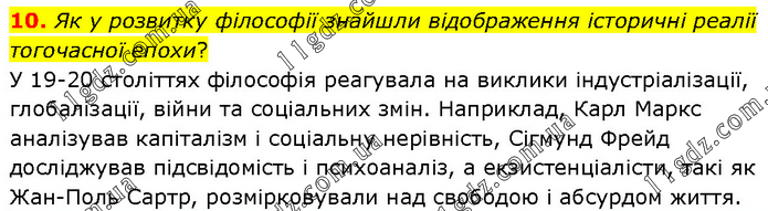 Як у розвитку філософії знайшли відображення історичні реалії тогочасної епохи? У 19-20 століттях філософія реагувала на виклики індустріалізації, глобалізації, війни та соціальних змін. Наприклад, Карл Маркс аналізував капіталізм і соціальну нерівність, Сігмунд Фрейд досліджував підсвідомість і психоаналіз, а екзистенціалісти, такі як Жан-Поль Сартр, розмірковували над свободою і абсурдом життя.