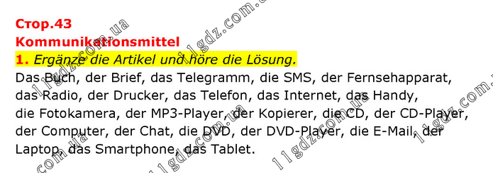 Kommunikationsmittel 1. Ergänze die Artikel und höre die Lösung. Das Buch, der Brief, das Telegramm, die SMS, der Fernsehapparat, das Radio, der Drucker, das Telefon, das Internet, das Handy, die Fotokamera, der MP3-Player, der Kopierer, die CD, der CD-Player, der Computer, der Chat, die DVD, der DVD-Player, die E-Mail, der Laptop, das Smartphone, das Tablet.