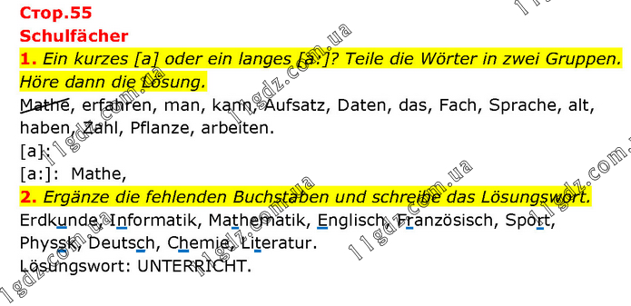 Lektion 5. Das Schulleben » Стр.55 (1-2)