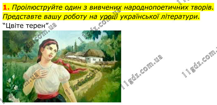 Проілюструйте один з вивчених народнопоетичних творів. Представте вашу роботу на уроці української літератури. “Цвіте терен”