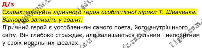 Схарактеризуйте ліричного героя особистісної лірики Т. Шевченка. Відповідь запишіть у зошит. Ліричний герой є уособленням самого поета, його внутрішнього світу. Він глибоко страждає, але залишається сильним і непохитним у своїх моральних ідеалах.