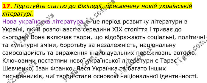 Підготуйте статтю до Вікіпедії, присвячену новій українській літературі. Нова українська література — це період розвитку літератури в Україні, який розпочався з середини ХІХ століття і триває до сьогодні. Вона включає твори, що відображають соціальні, політичні та культурні зміни, боротьбу за незалежність, національну самосвідомість та вираження індивідуальних переживань авторів. Ключовими постатями нової української літератури є Тарас Шевченко, Іван Франко, Леся Українка та багато інших письменників, чиї твори стали основою національної ідентичності.