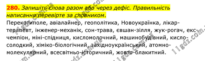 Запишіть слова разом або через дефіс. Правильність написання перевірте за словником. Перекотиполе, авіалайнер, геополітика, Новоукраїнка, лікар-терапевт, інженер-механік, сон-трава, євшан-зілля, жук-рогач, екс-чемпіон, міні-спідниця, кисломолочний, машинобудівний, кисло-солодкий, хіміко-біологічний, західноукраїнський, атомно-молекулярний, всесвітньо-історичний, жовто-блакитний.