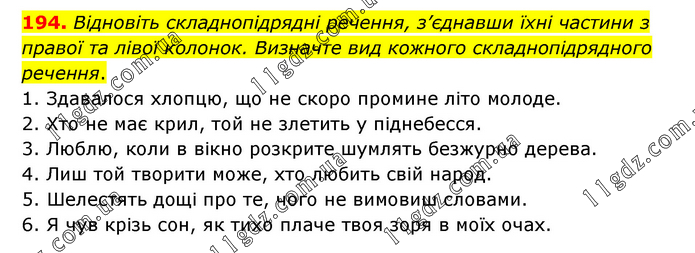 СКЛАДНОПІДРЯДНЕ РЕЧЕННЯ » 194