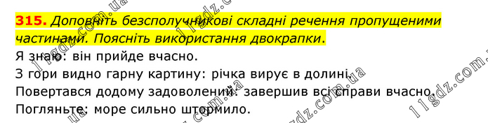 БЕЗСПОЛУЧНИКОВЕ СКЛАДНЕ РЕЧЕННЯ » 315