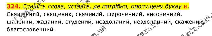 Спишіть слова, уставте, де потрібно, пропущену букву н. Священний, священик, свячений, широченний, височенний, шалений, жаданий, студений, нездоланий, нездоланний, скажений, благословенний.
