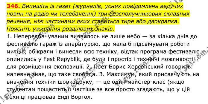 БЕЗСПОЛУЧНИКОВЕ СКЛАДНЕ РЕЧЕННЯ » 346