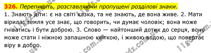 Перепишіть, розставляючи пропущені розділові знаки. 1. Знають діти: є на світі казка, та не знають, де вона живе. 2. Мати вірила: земля усе знає, що говорить, чи думає чоловік; вона може гніватись і бути доброю. 3. Слово — найтонший дотик до серця, воно може стати і ніжною запашною квіткою, і живою водою, що повертає віру в добро.