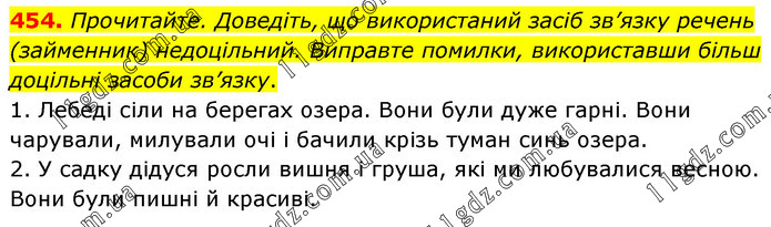Прочитайте. Доведіть, що використаний засіб зв’язку речень (займенник) недоцільний. Виправте помилки, використавши більш доцільні засоби зв’язку. 1. Лебеді сіли на берегах озера. Вони були дуже гарні. Вони чарували, милували очі і бачили крізь туман синь озера. 2. У садку дідуся росли вишня і груша, які ми любувалися весною. Вони були пишні й красиві.