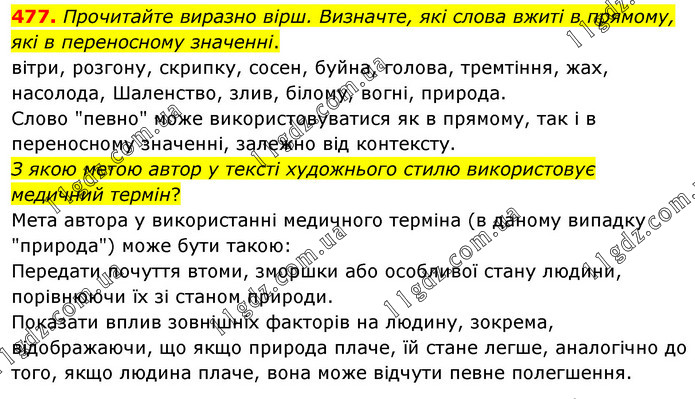 Прочитайте виразно вірш. Визначте, які слова вжиті в прямому, які в переносному значенні. вітри, розгону, скрипку, сосен, буйна, голова, тремтіння, жах, насолода, Шаленство, злив, білому, вогні, природа. Слово "певно" може використовуватися як в прямому, так і в переносному значенні, залежно від контексту. З якою метою автор у тексті художнього стилю використовує медичний термін? Мета автора у використанні медичного терміна (в даному випадку "природа") може бути такою: Передати почуття втоми, зморшки або особливої стану людини, порівнюючи їх зі станом природи. Показати вплив зовнішніх факторів на людину, зокрема, відображаючи, що якщо природа плаче, їй стане легше, аналогічно до того, якщо людина плаче, вона може відчути певне полегшення.