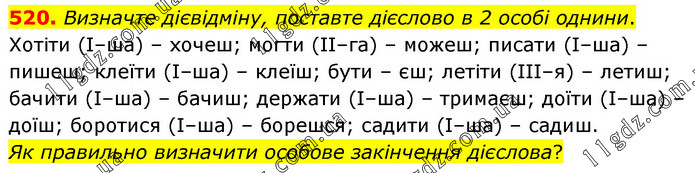 Визначте дієвідміну, поставте дієслово в 2 особі однини. Хотіти (І–ша) – хочеш; могти (ІІ–га) – можеш; писати (І–ша) – пишеш; клеїти (І–ша) – клеїш; бути – єш; летіти (ІІІ–я) – летиш; бачити (І–ша) – бачиш; держати (І–ша) – тримаєш; доїти (І–ша) – доїш; боротися (І–ша) – борешся; садити (І–ша) – садиш. Як правильно визначити особове закінчення дієслова?